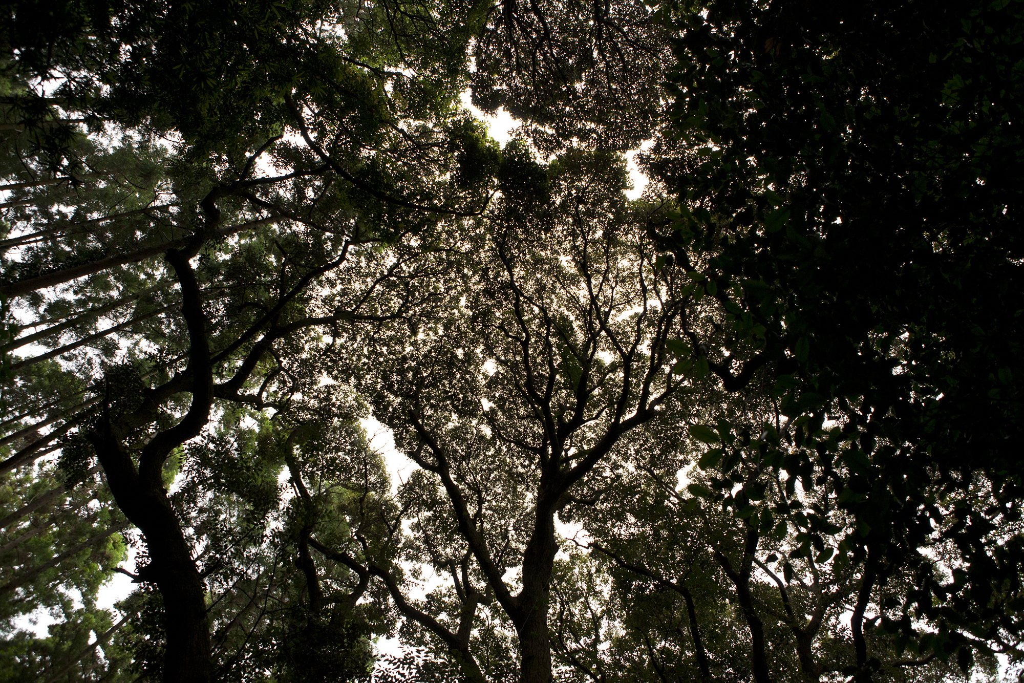 空を埋め尽くすように、樹冠を広げるシイの木。