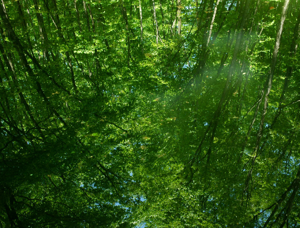 カメラを逆さまにして写したわけではありません。池にブナがきれいに映っている写真です。