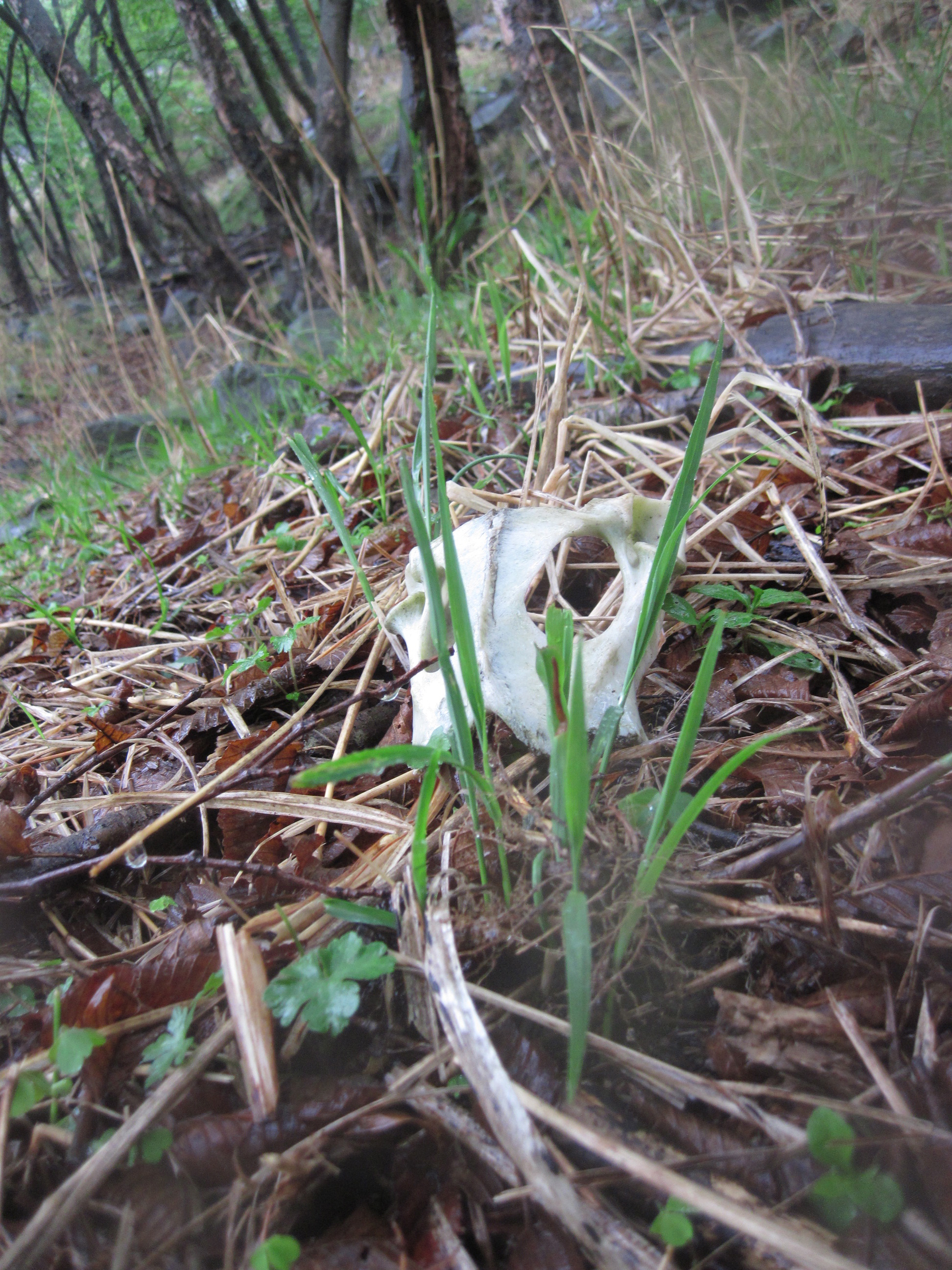 頭がい骨は雨に濡れ白く光り、なんというかちょっと詩的なくらい。
