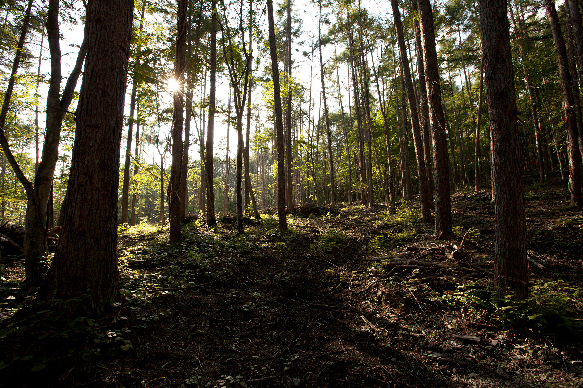 人工林の中から撮ったものです。午後4時くらいで日が落ちて来てちょっと寂しいようなあったかいような不思議な光景でした。