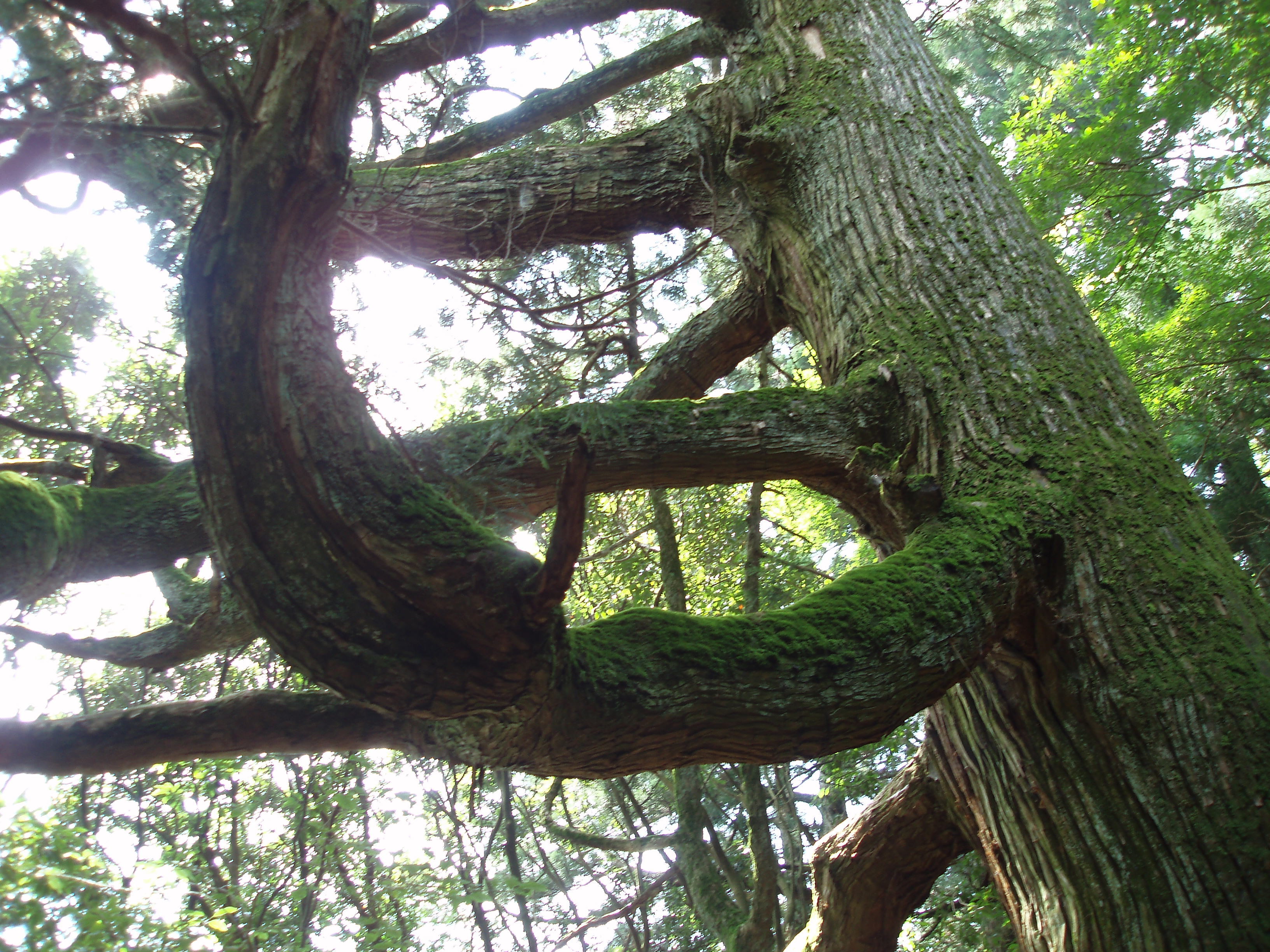 今にも動き出しそうな躍動感ある枝ぶりと、苔むしが物語る静謐感が同居した不思議な樹でした。