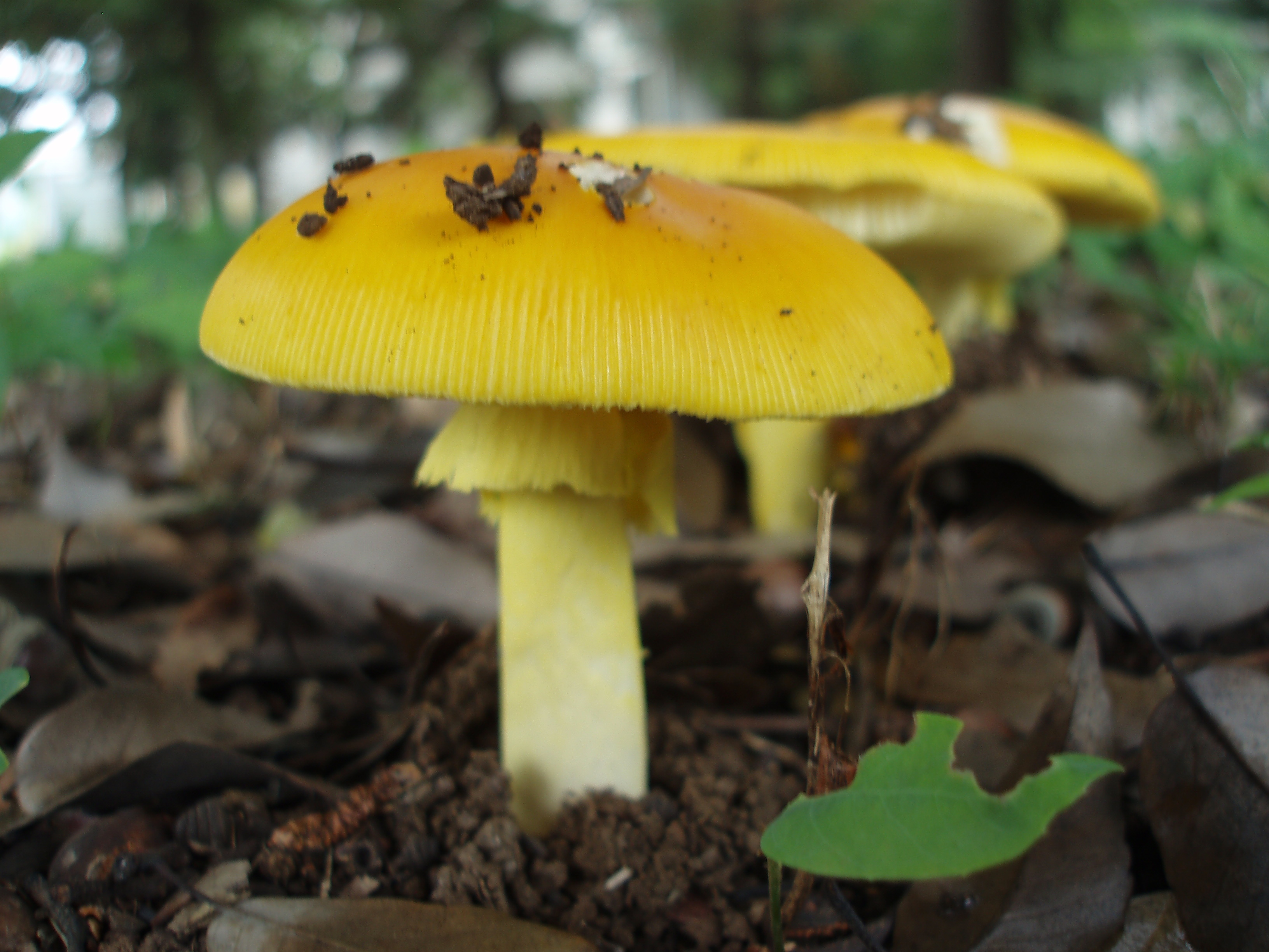 目に鮮やかなきのこの行列です。なんだか「かさこ地蔵」みたいにも見えます。