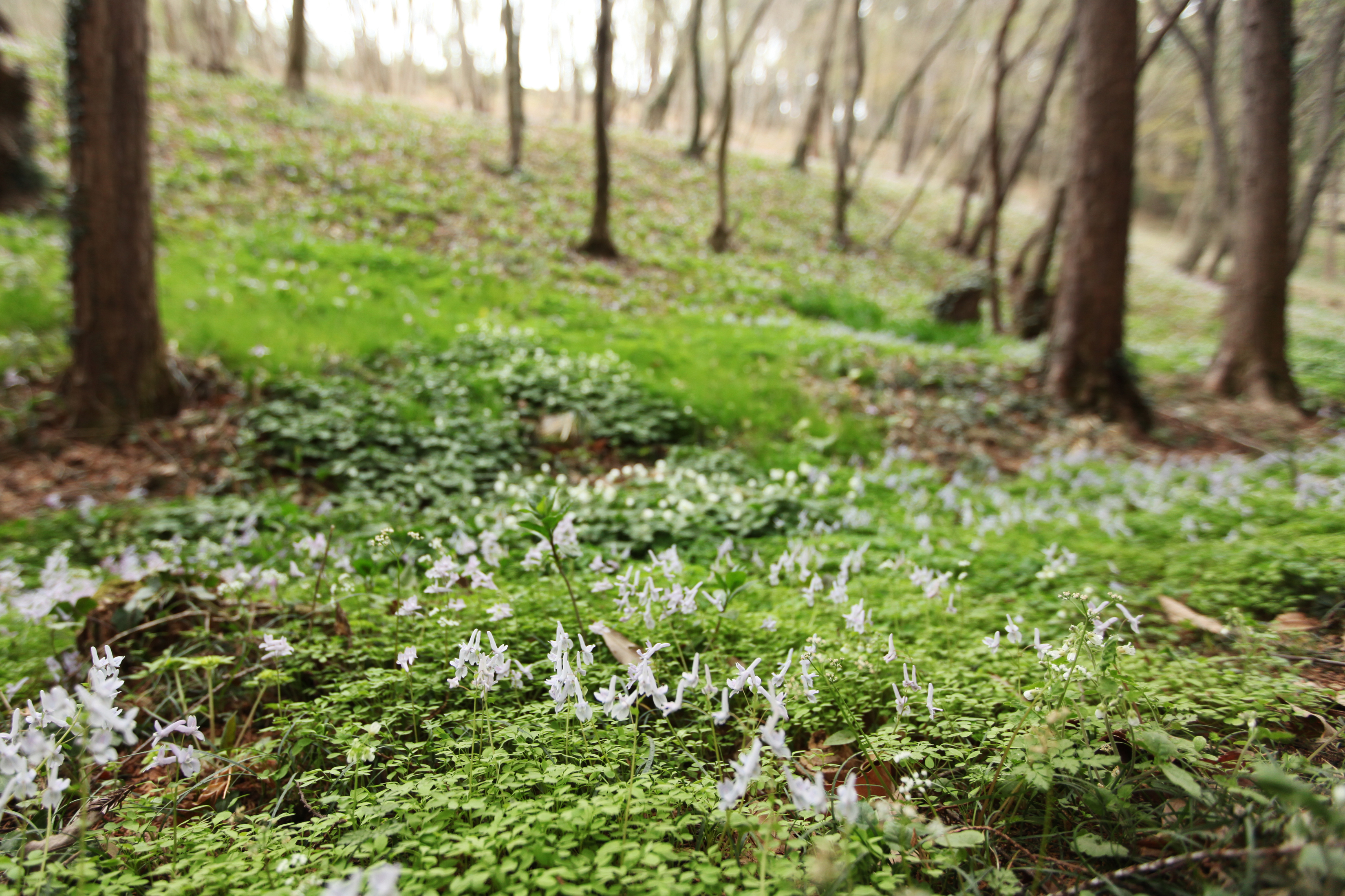 手入れの行き届いたこの森は、地元のボランティアによるものだそう。白いエンゴサクの群生がとても可愛らしく、気持ちのよい場所でした。