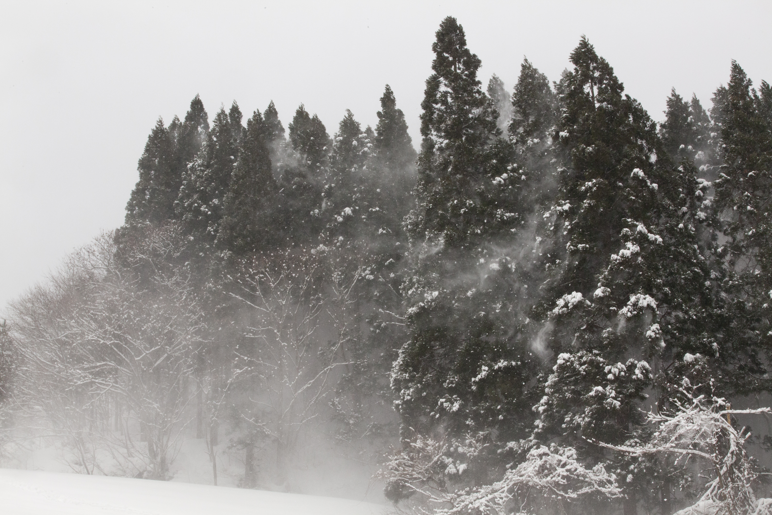 横風に、枝に積もった雪がブワッと舞い上がる瞬間を眺めていると、怪獣映画に入り込んだようでワクワクします。