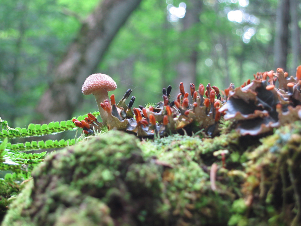 切り株からきのこがはえていました。