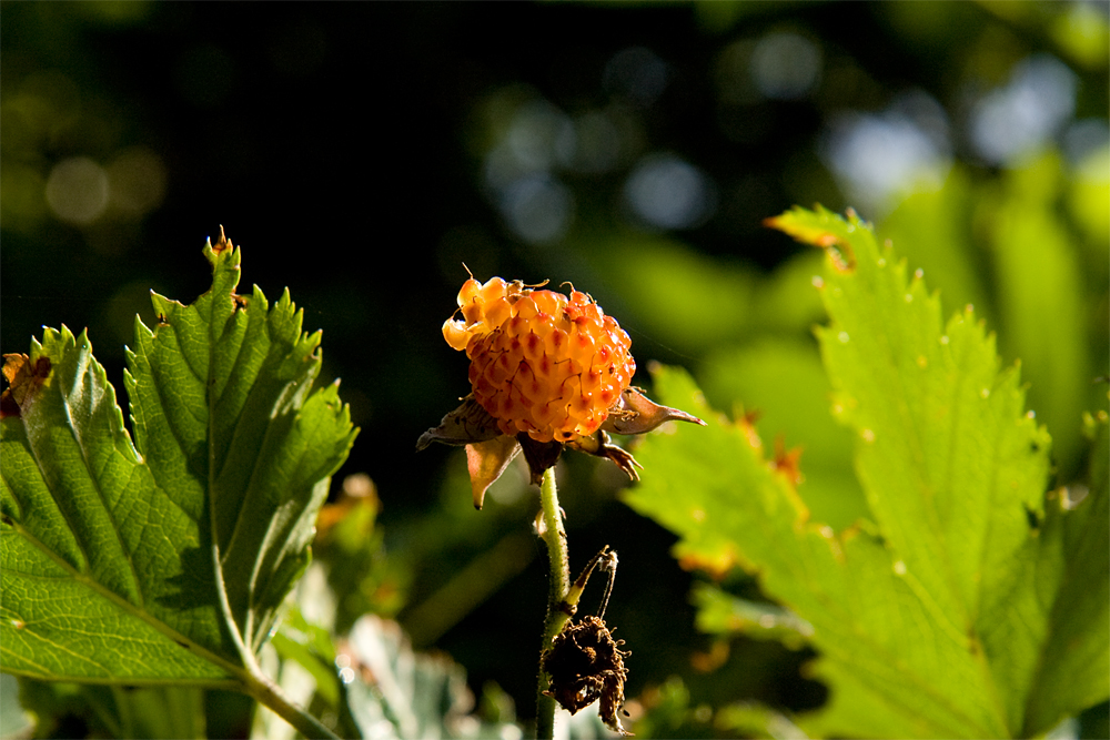 ほんのり甘いカジイチゴ。時々蟻が入っていて、酸っぱいことも。