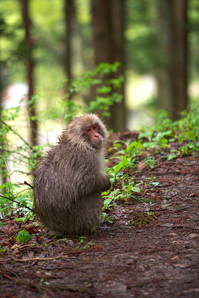 山道を歩いていると、突然数匹の猿の群れが目の前に!