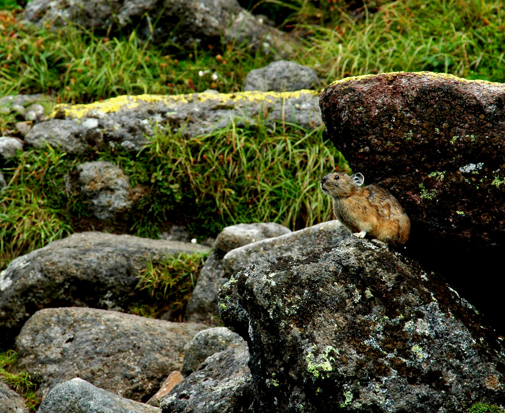 大雪山のなきうさぎの生息地の岩場でしばらく待っていたら、