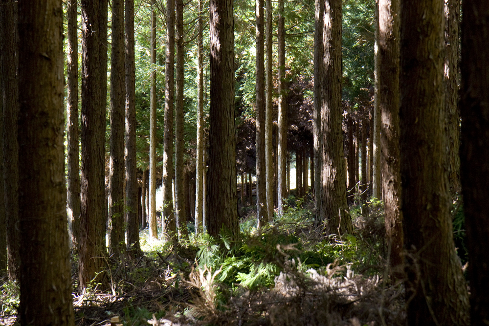 枝打ちをして、見通しが良くなりました。 地面には打たれた枝が摘まれています。豊かな下草に覆われる事でしょう。