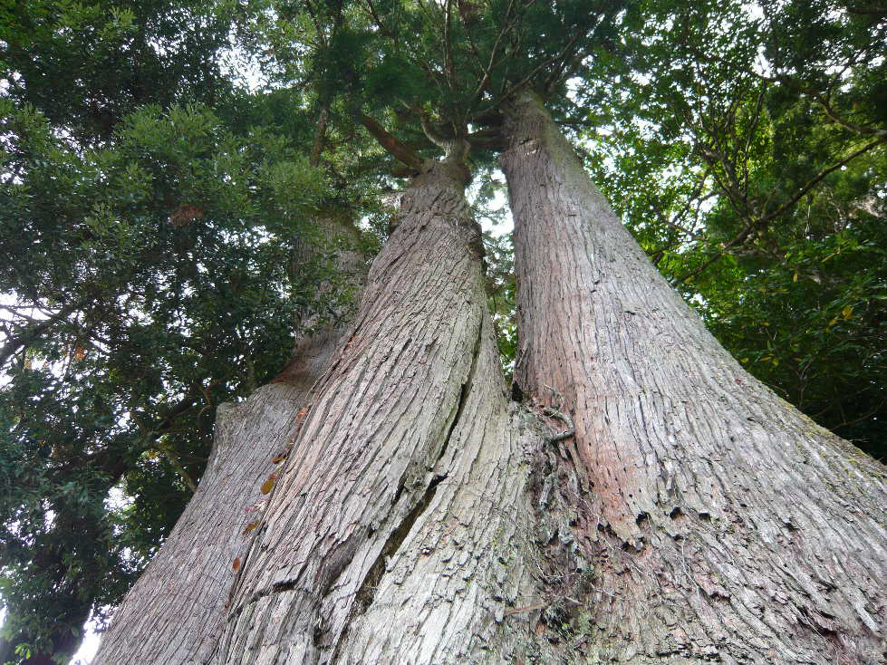 株が3つに分かれていますが、最も太いところで、周囲8.8m樹高45mの巨木です。