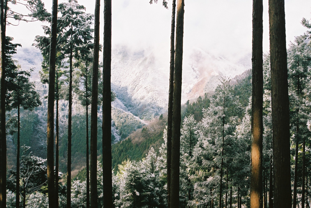 薄雲の間に、うっすらと新雪をまとった鷹巣山。でも日が昇ると雪はあっという間に消えてしまいます。