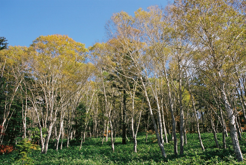 「白樺」と「青空」と「緑のカーペット」の彩り豊かな組み合わせに「尾瀬の秋」を満喫