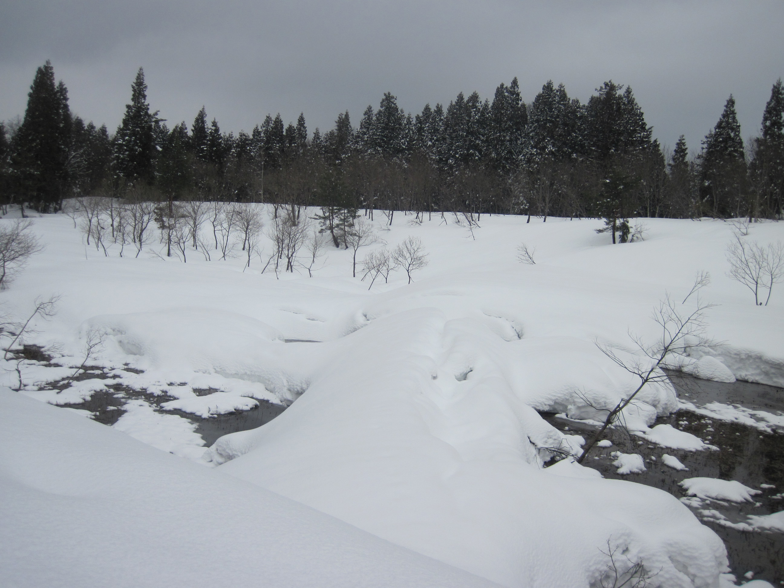 池でもない水たまりは水田だったところ。カエルの住み家だったり、そのカエルをねらうテンの餌場だったり。