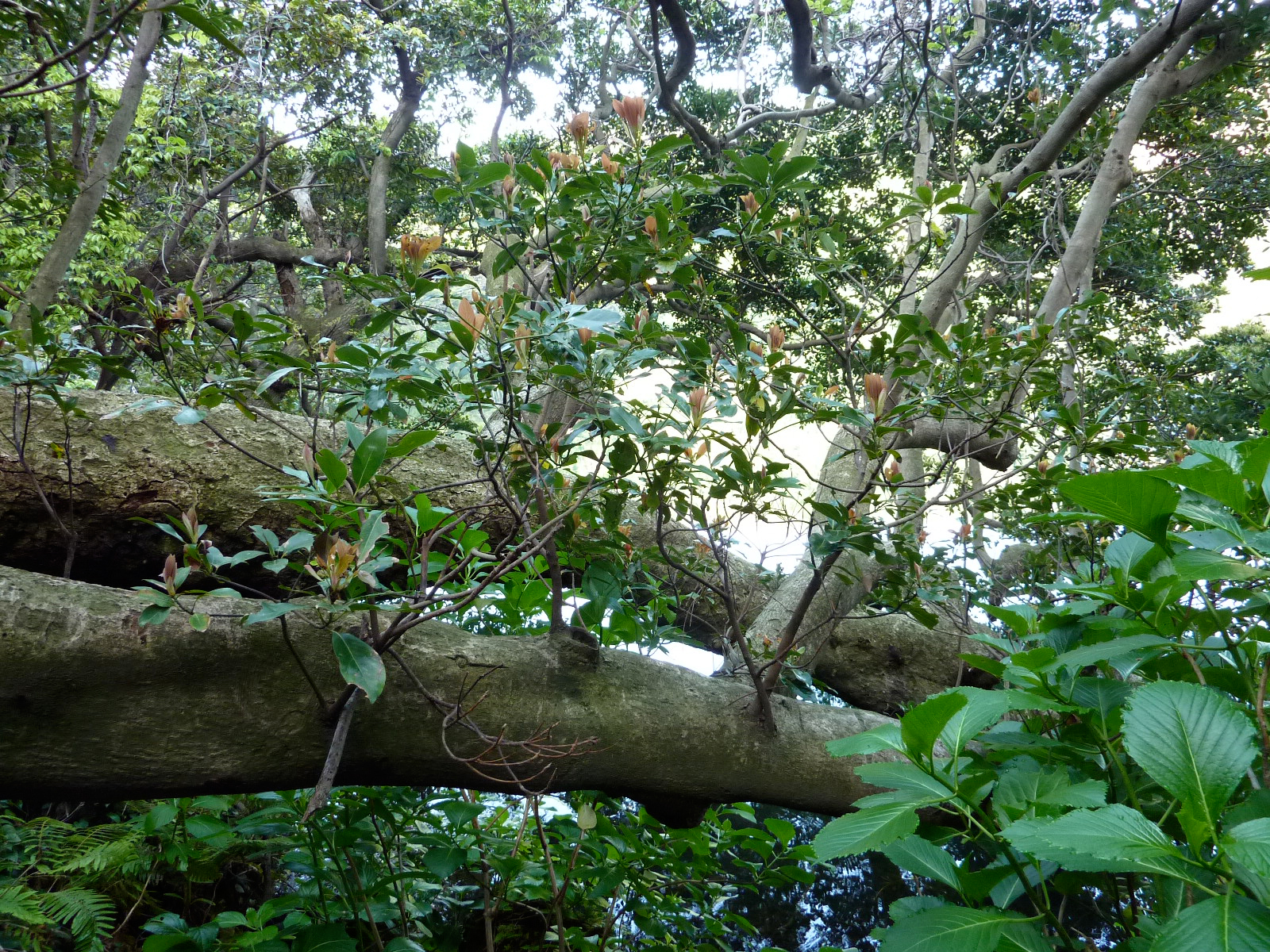 芽の色はちょっと赤くてそんな感じなんだけど、葉っぱが細いような気がして自信ない。この森全体はスダジイのちょっと青臭いような生臭いような、むわっとする匂いがしてました。