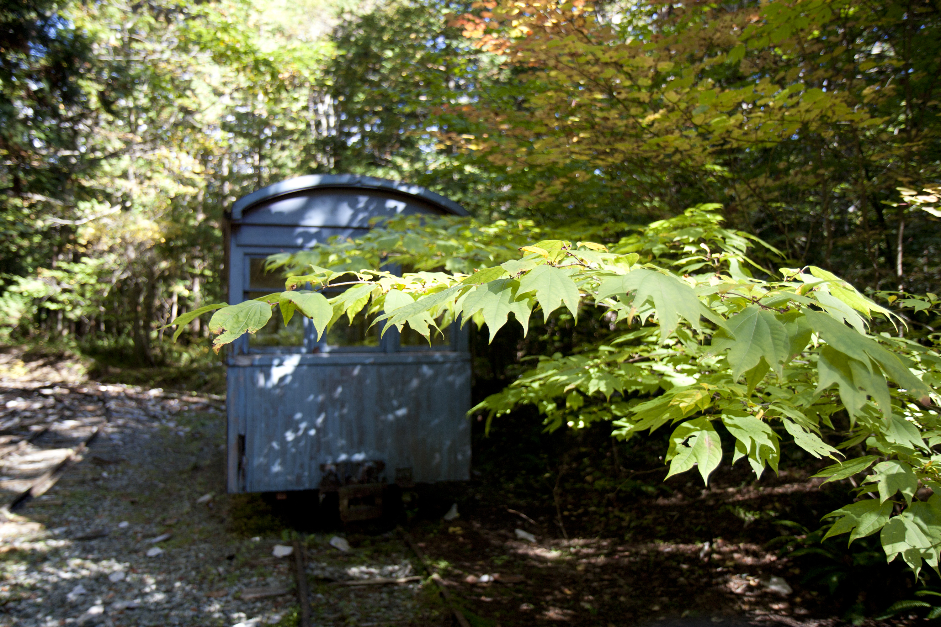 木曽の美しい森の中を走る赤沢森林鉄道。かつては材木の運搬に使われていました。