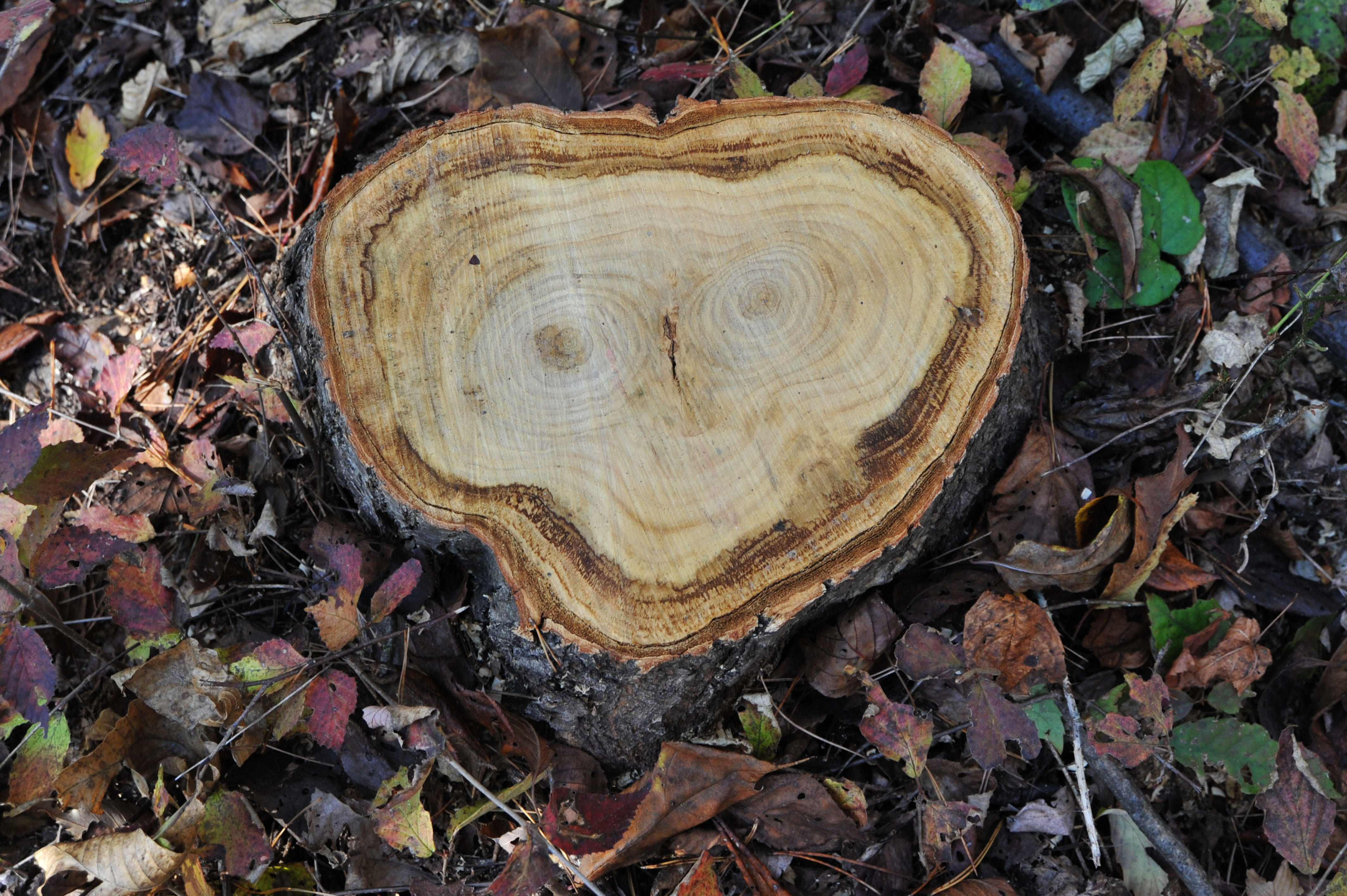 寄り添って育った木が一緒になってしまったのでしょうか。