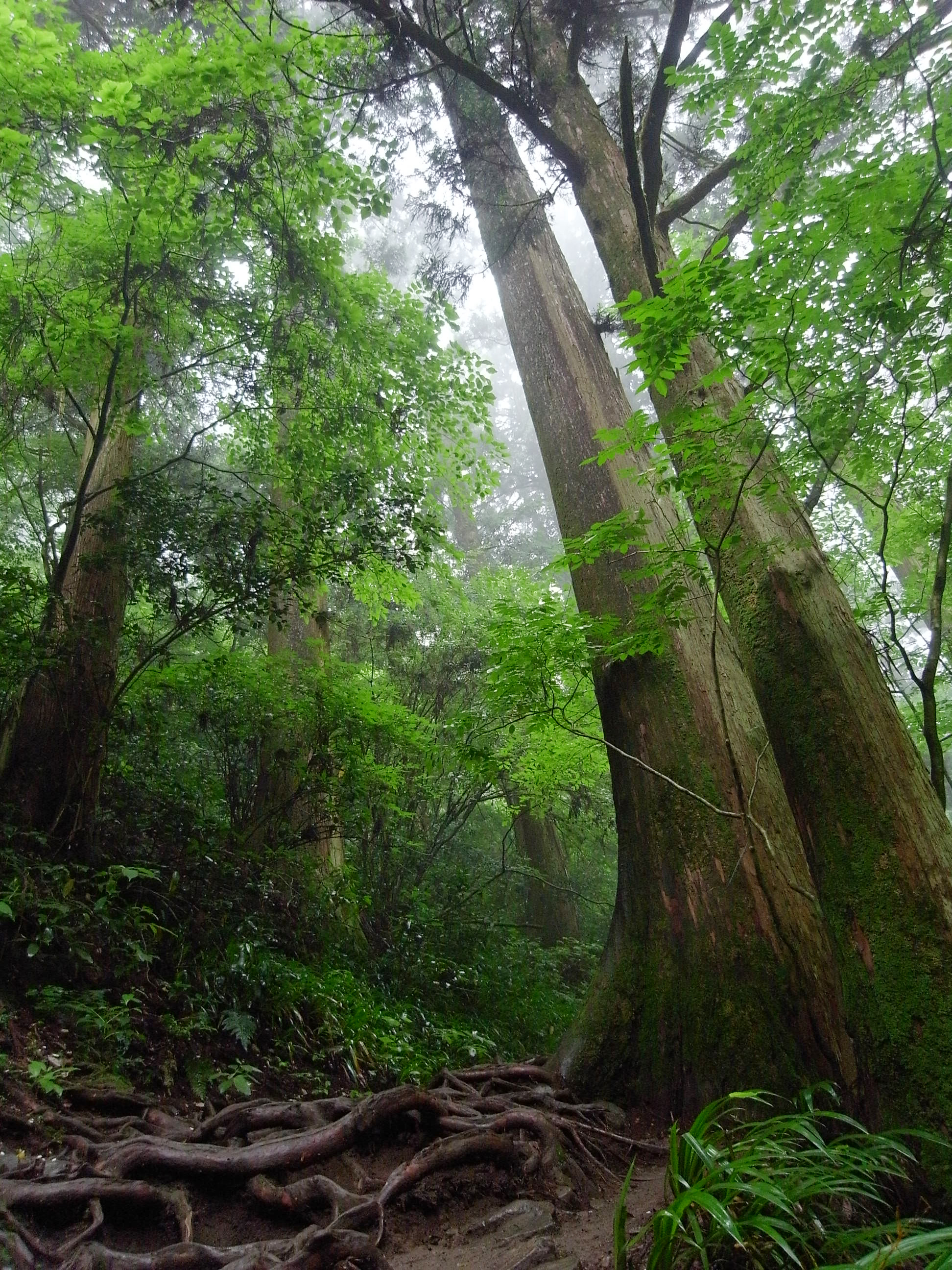 山道にそびえる杉