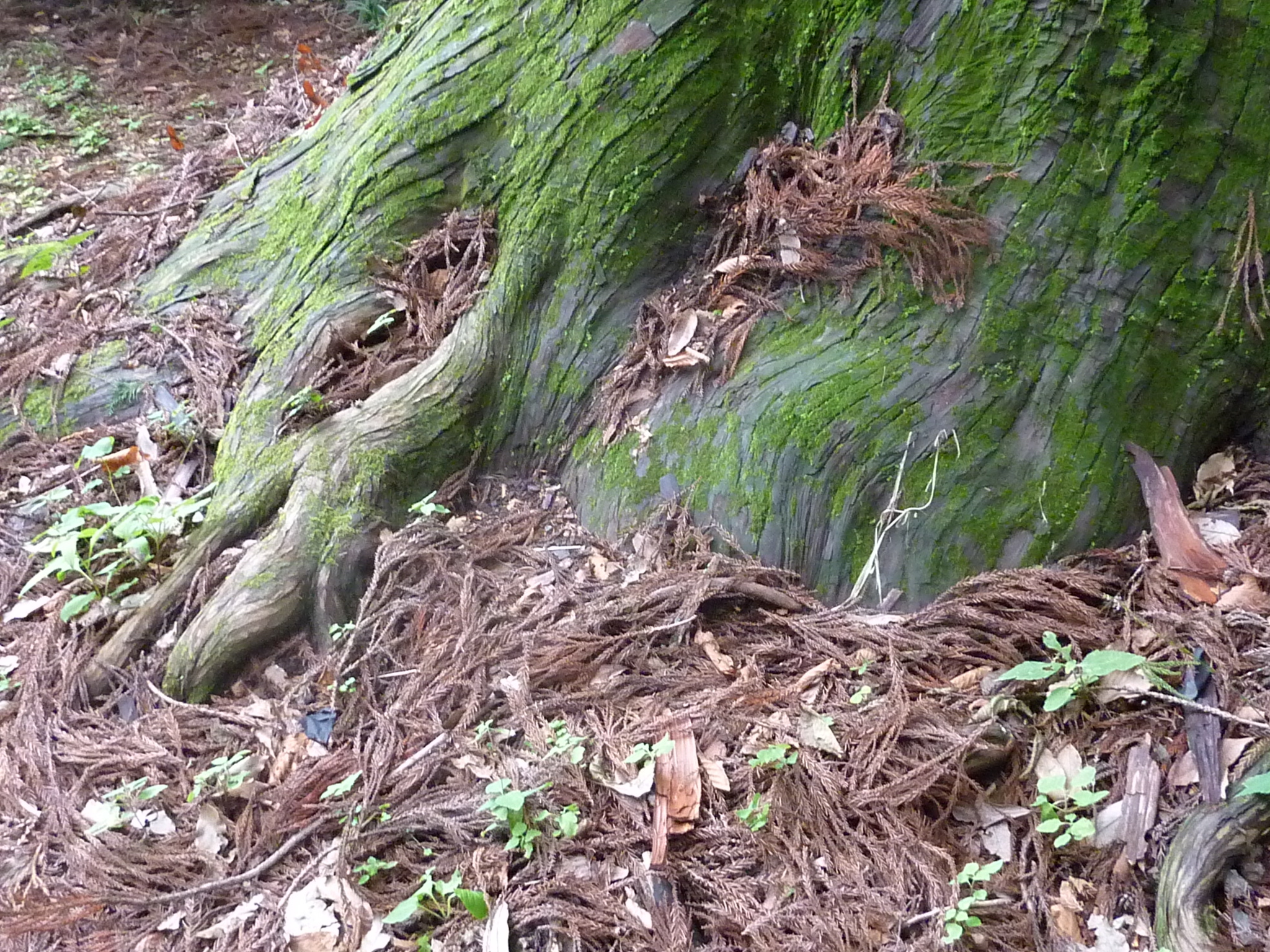落ちた杉の葉の様子が、美容院の床みたいに見えました。