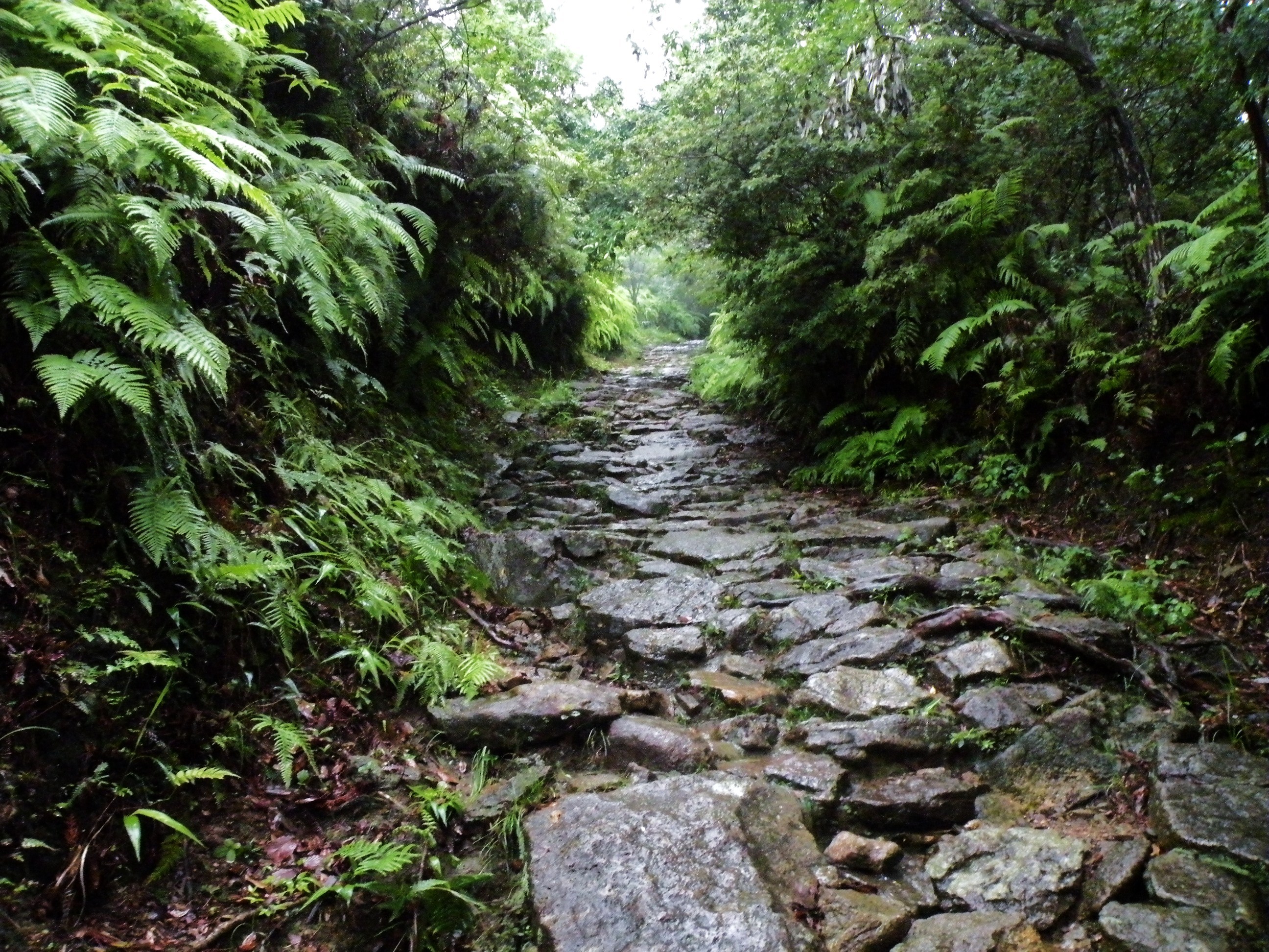 馬越峠の石畳の古道は雨に濡れて緑がますます綺麗です。