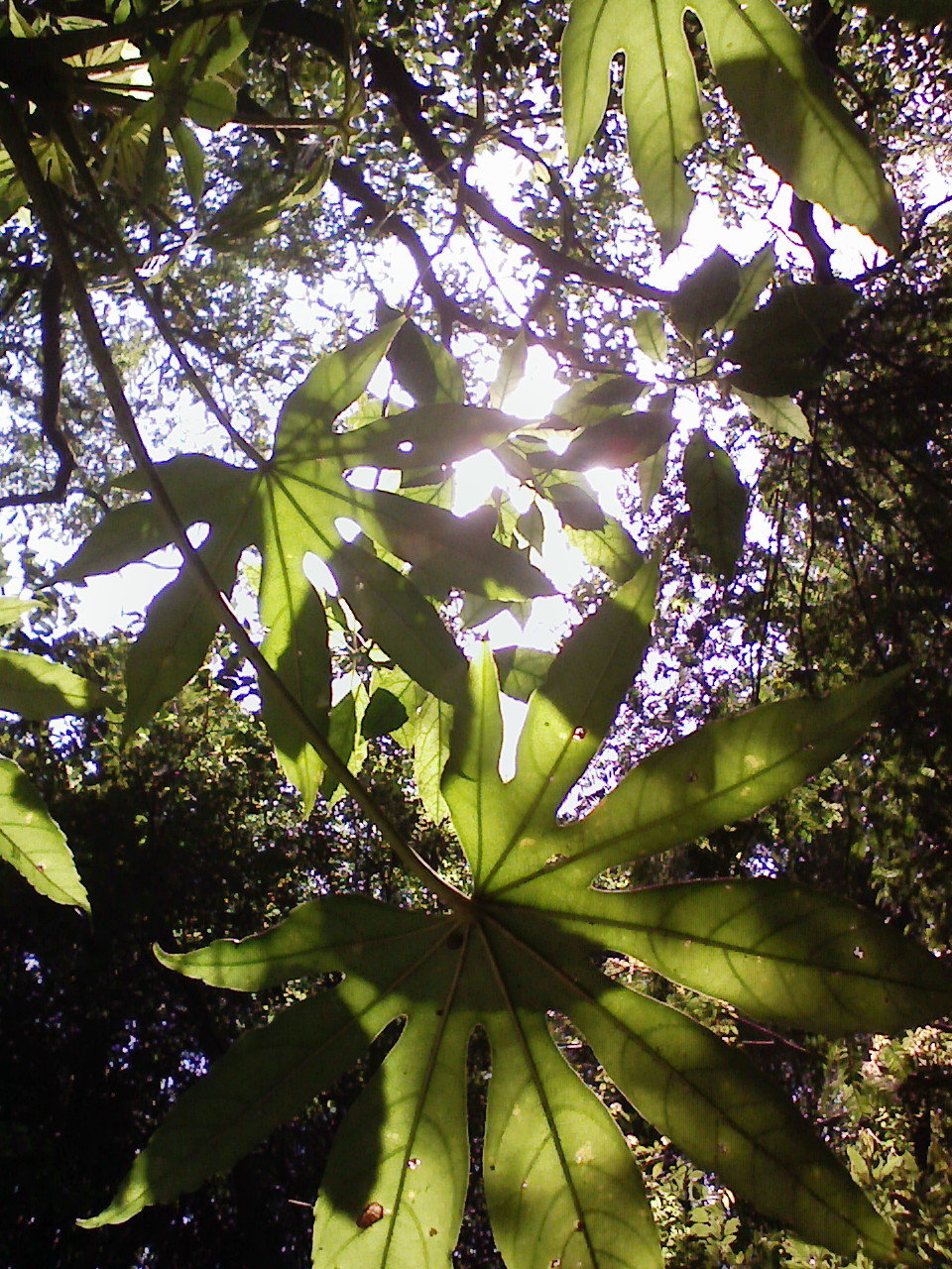 ヤツデの大きな葉に守られて