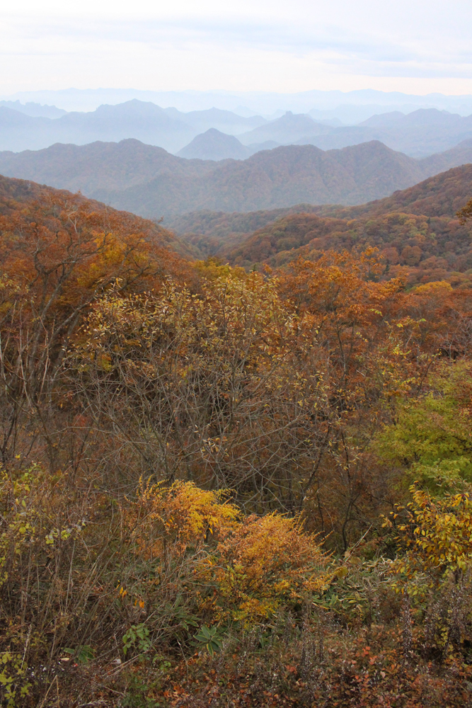 軽井沢 見晴らし台からの眺め。左端の遠くに見えるギザギザした山が岩場が有名な妙義山。